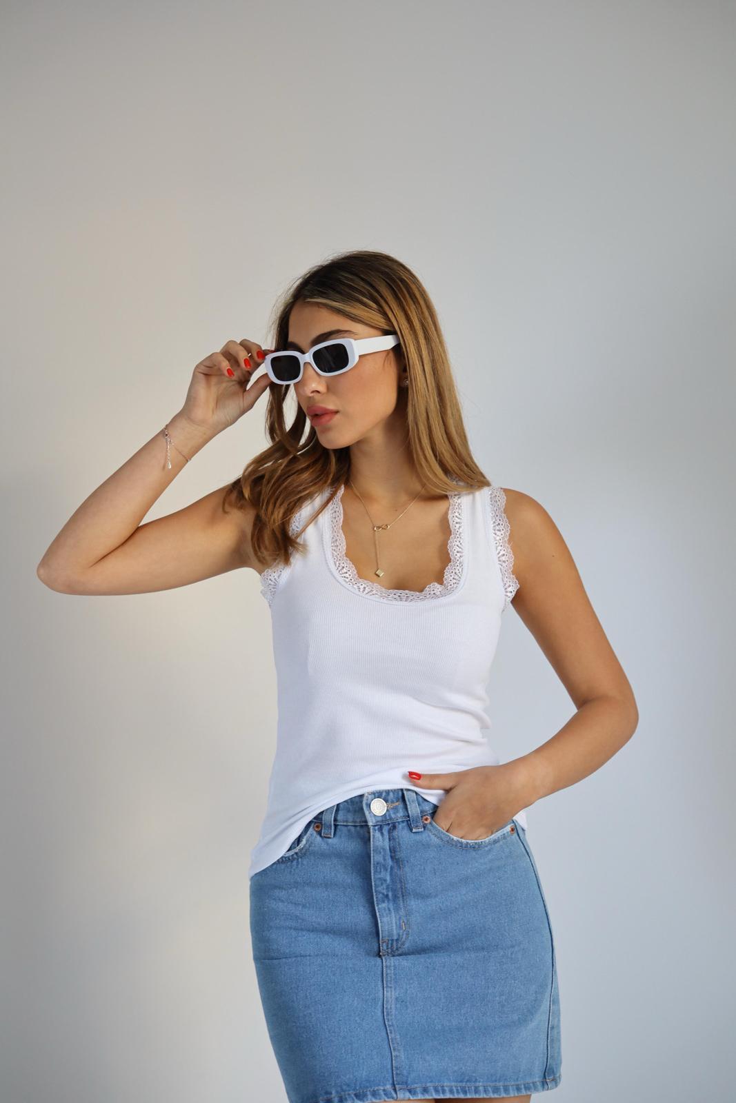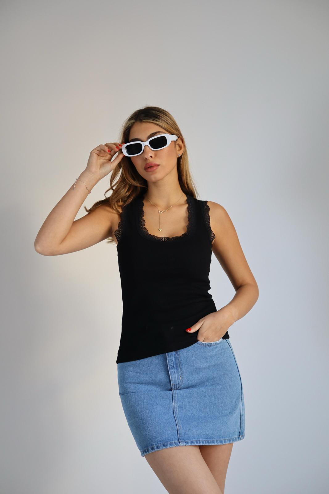 גופייה מבד ריב עם שילוב תחרה מיוחדת .