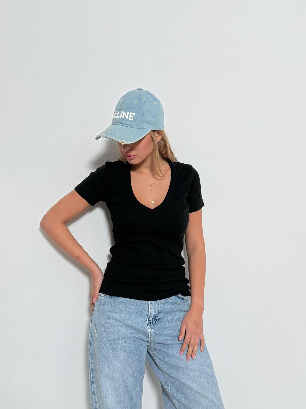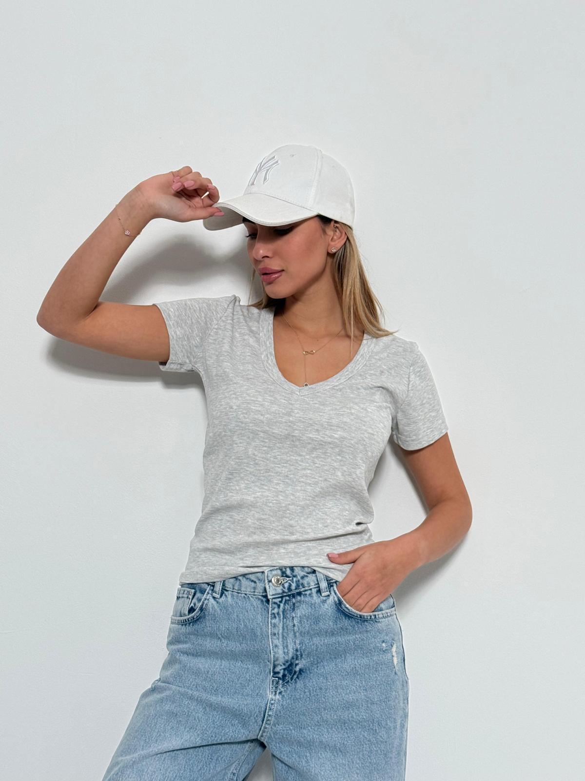 חולצה בגיזרה וי קלסית מבד כותנה איכותי