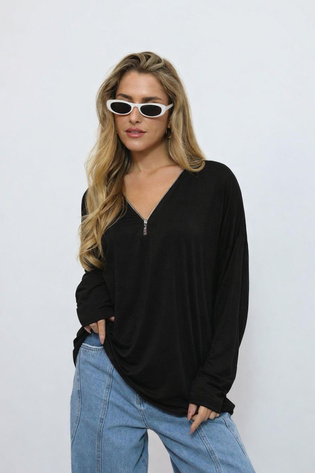 חולצת בגזרה רחבה מבד ויסקוזה נעים במיוחד עם שילוב רוכסן לשדרוג המראה