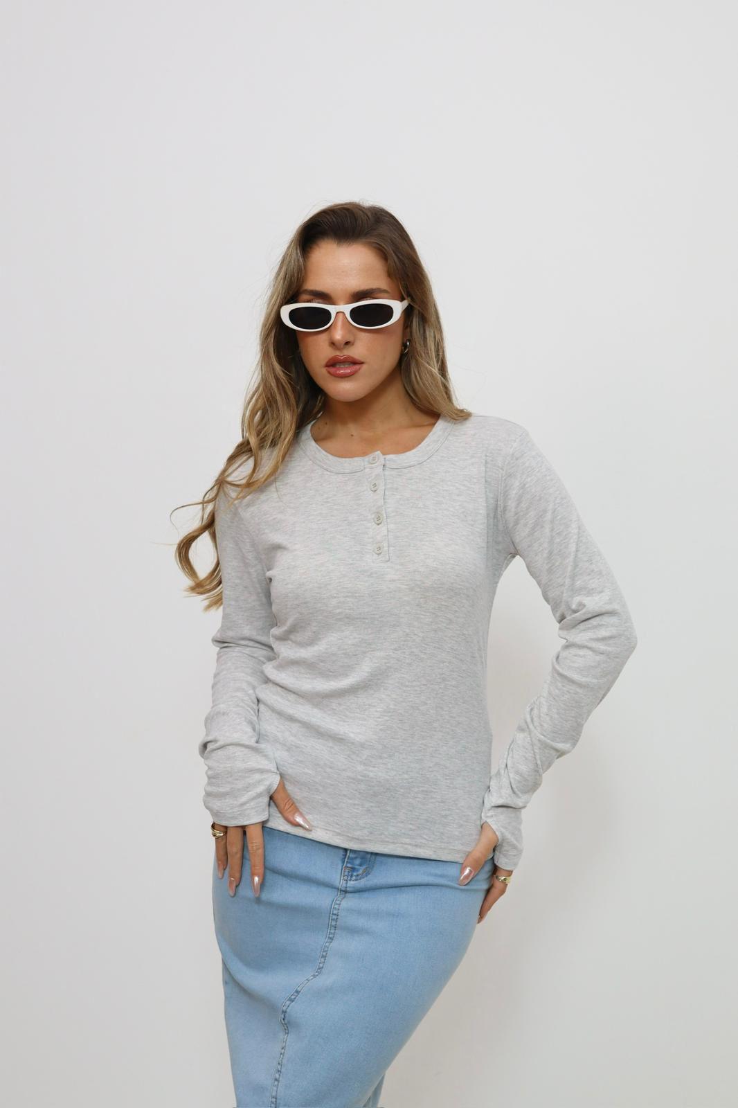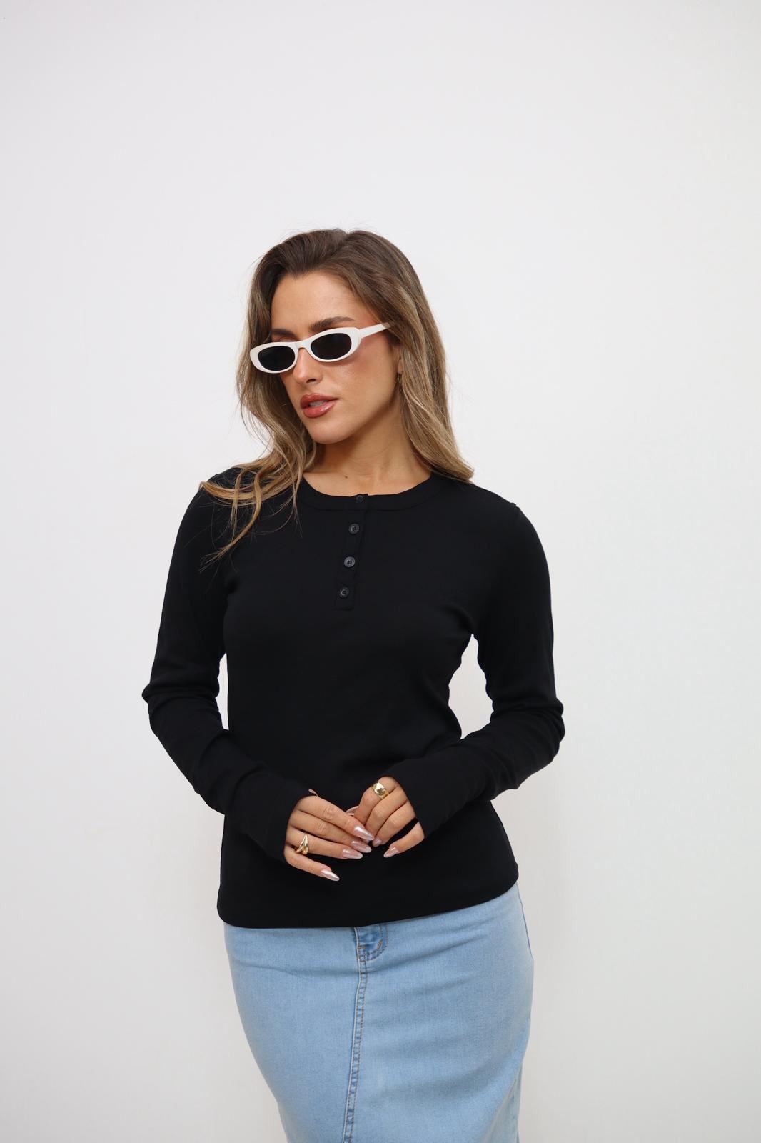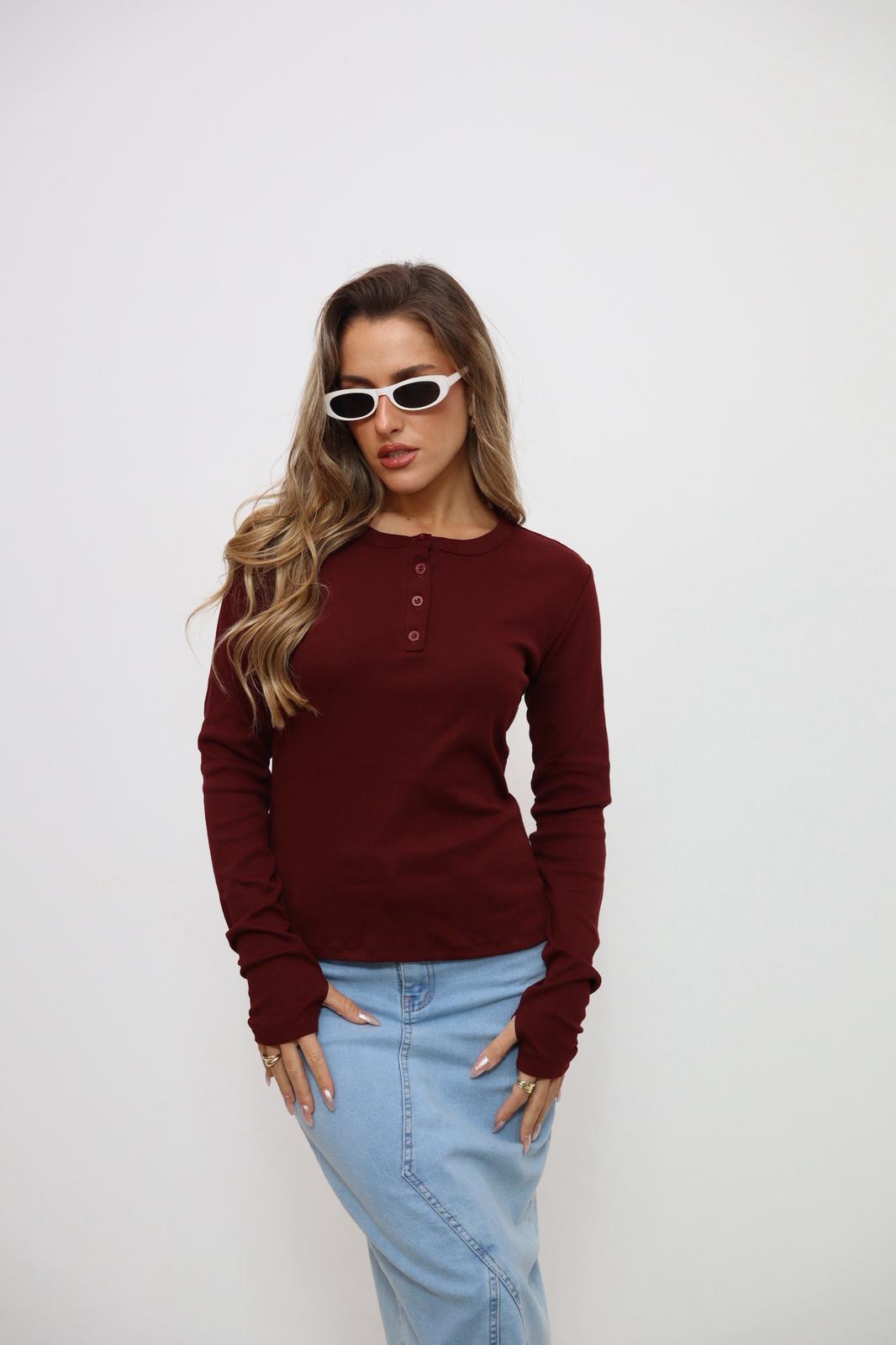 חולצה מבד פיין ריב, עם כפתורים בחלק העליון של החולצה ושילוב פתח לאצבע בכף היד