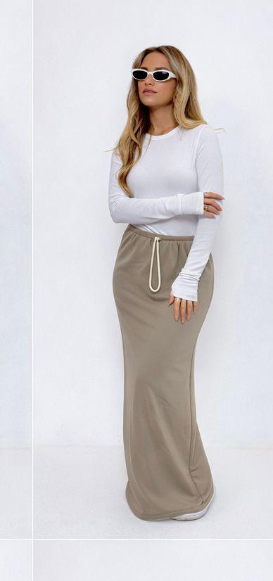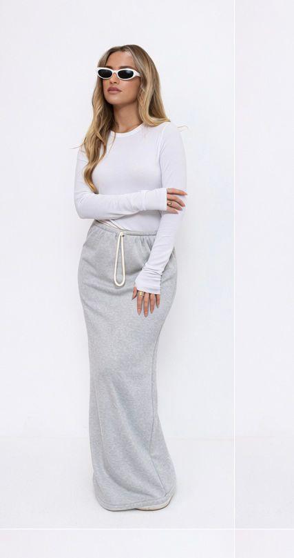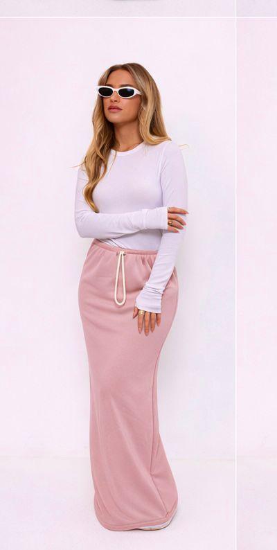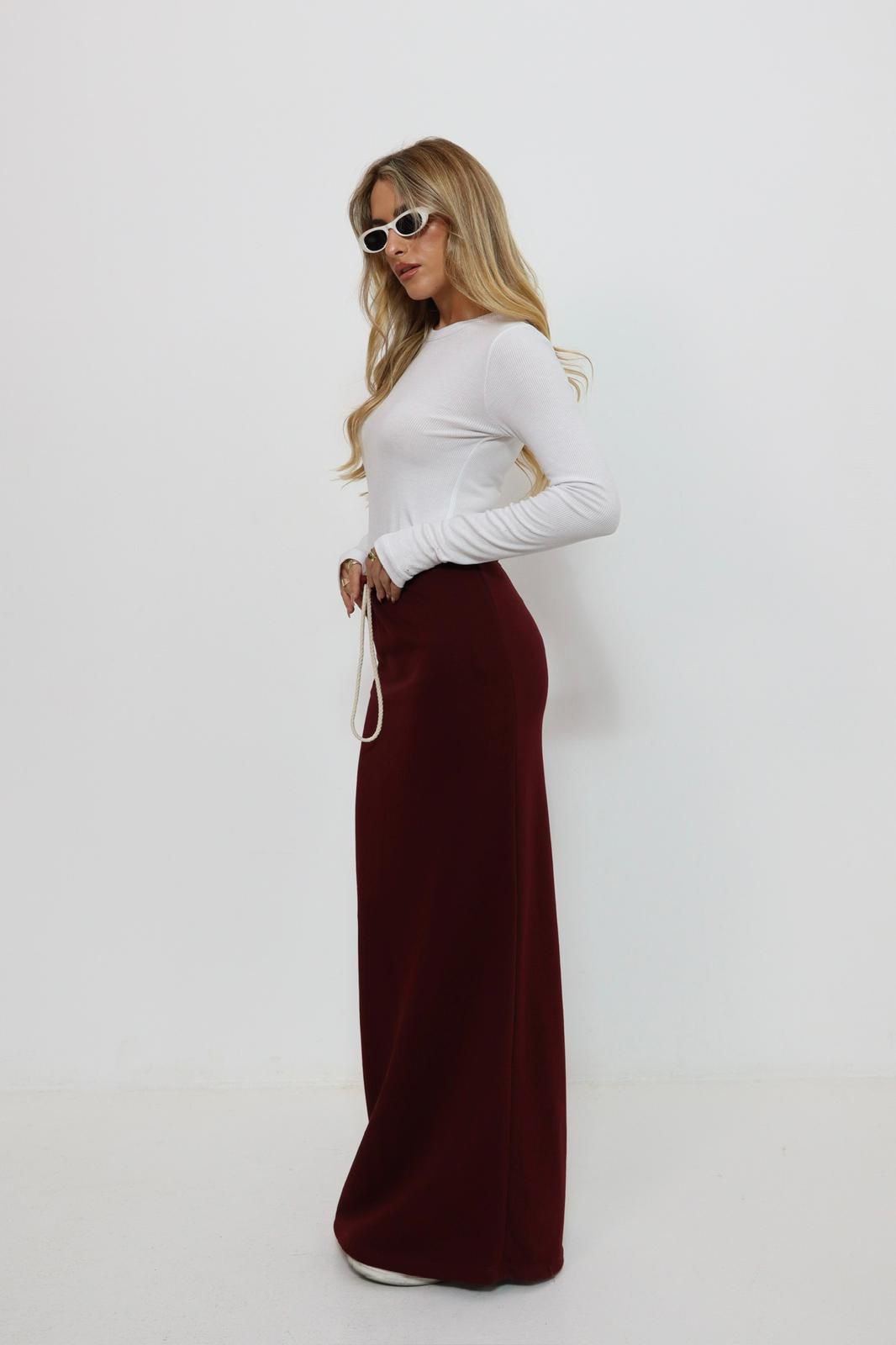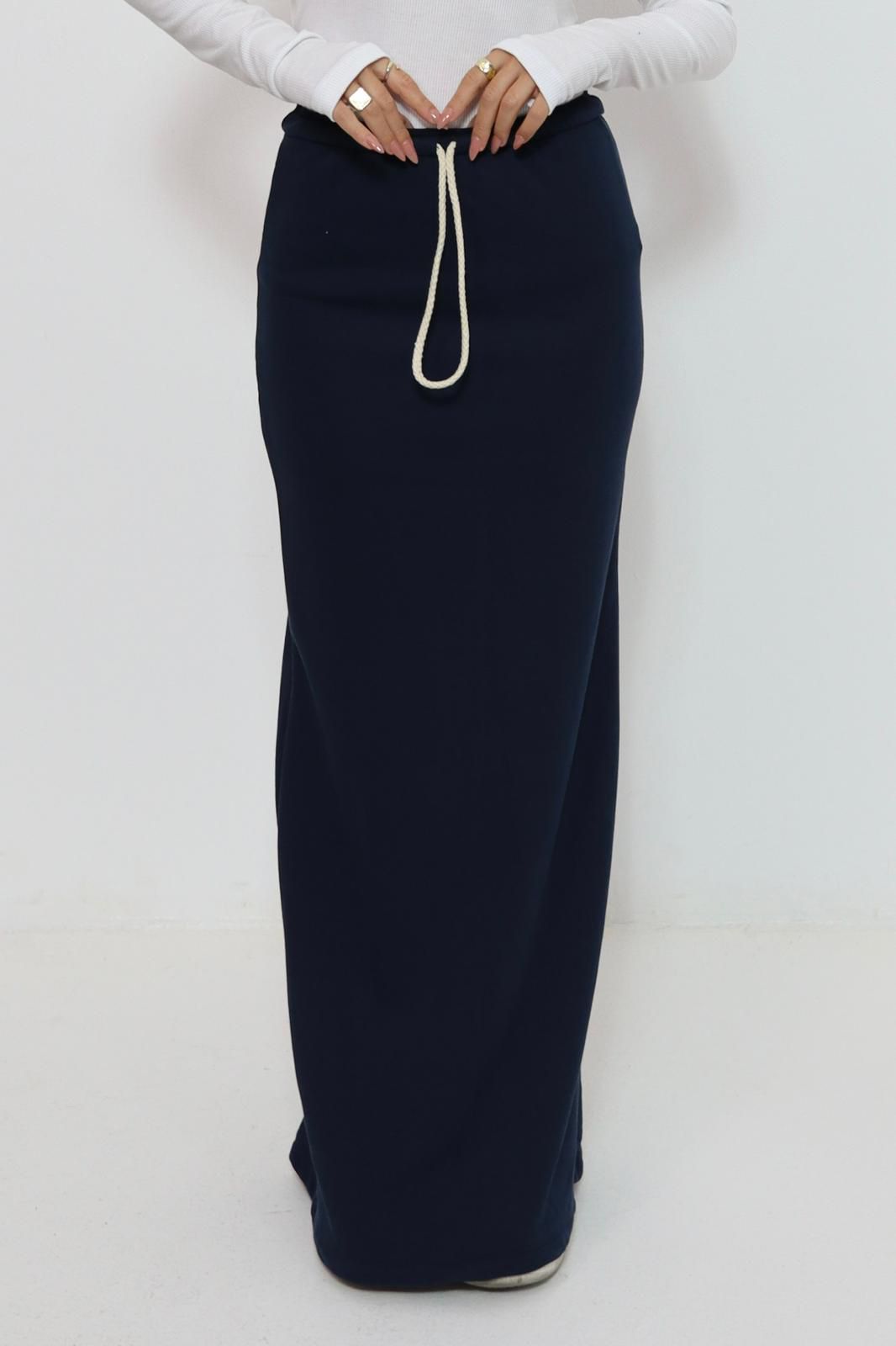 חצאית מקסי מבד פרנץ טרי , עם גומי שנמתח ושרוך.