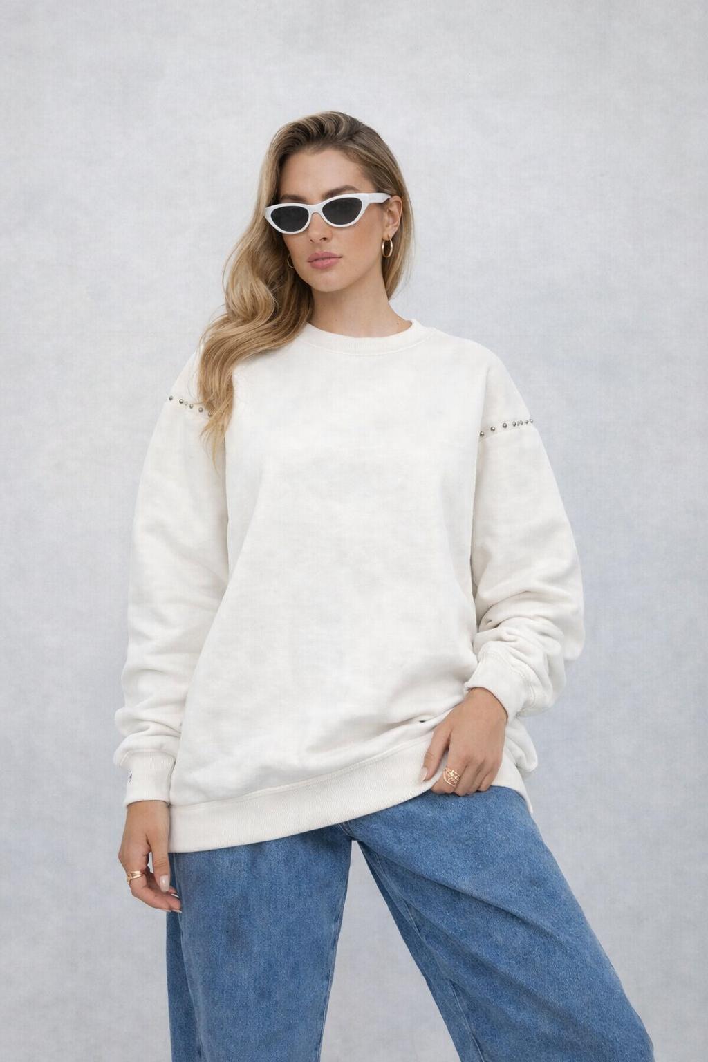 סווטשרט מפוטר נעים ואיכותי, בגזרת אוברסייז עם מעט ניטים לשדרוג המראה