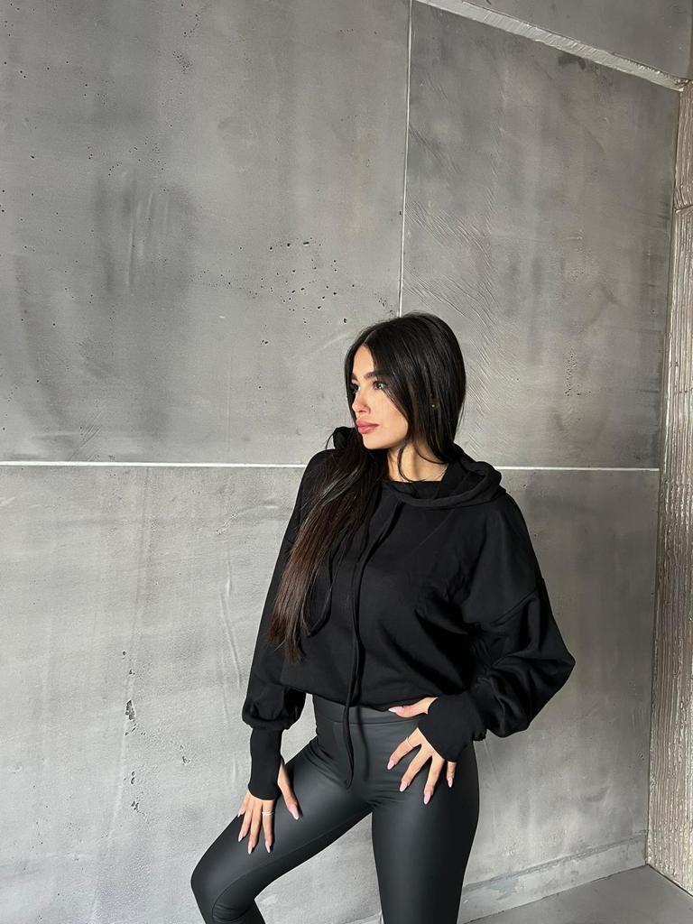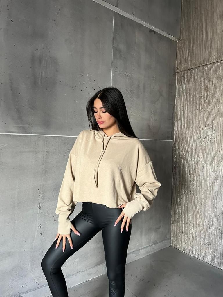 קפוצון אופנתי אורך עד המותן עם סיומת בכף היד דמוית כפפה